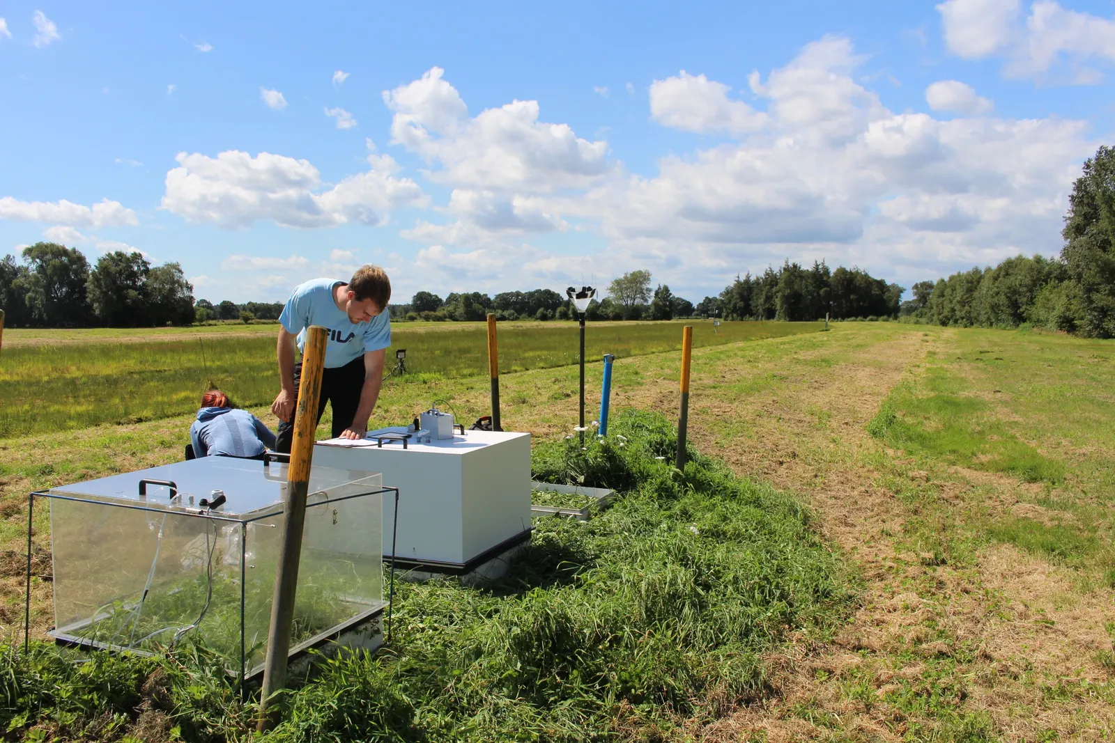 Auf beiden Torfmoos-Paludikulturflächen sowie auf einer Referenzfläche auf Hochmoorgrünland werden Messungen zur Ermittlung der Treibhausgas (THG)-Bilanz stattfinden. Dafür stellen wir Messtürme, sogenannte Eddy-Covariance-Messysteme auf, die die Treibhausgase CO2 und CH4 im Umkreis von ca. 150 m messen. Nach mindestens 5 Jahren Messungen können wir den Einfluss klimatischer Schwankungen zwischen den Jahren auf die Gesamt-THG-Bilanzen abbilden. Zusätzlich werden durch manuelle Haubensysteme kleinere Landschaftselemente genauer unter die Lupe genommen. So lassen sich mögliche Hotspots von THG-Emissionen besser identifizierten.