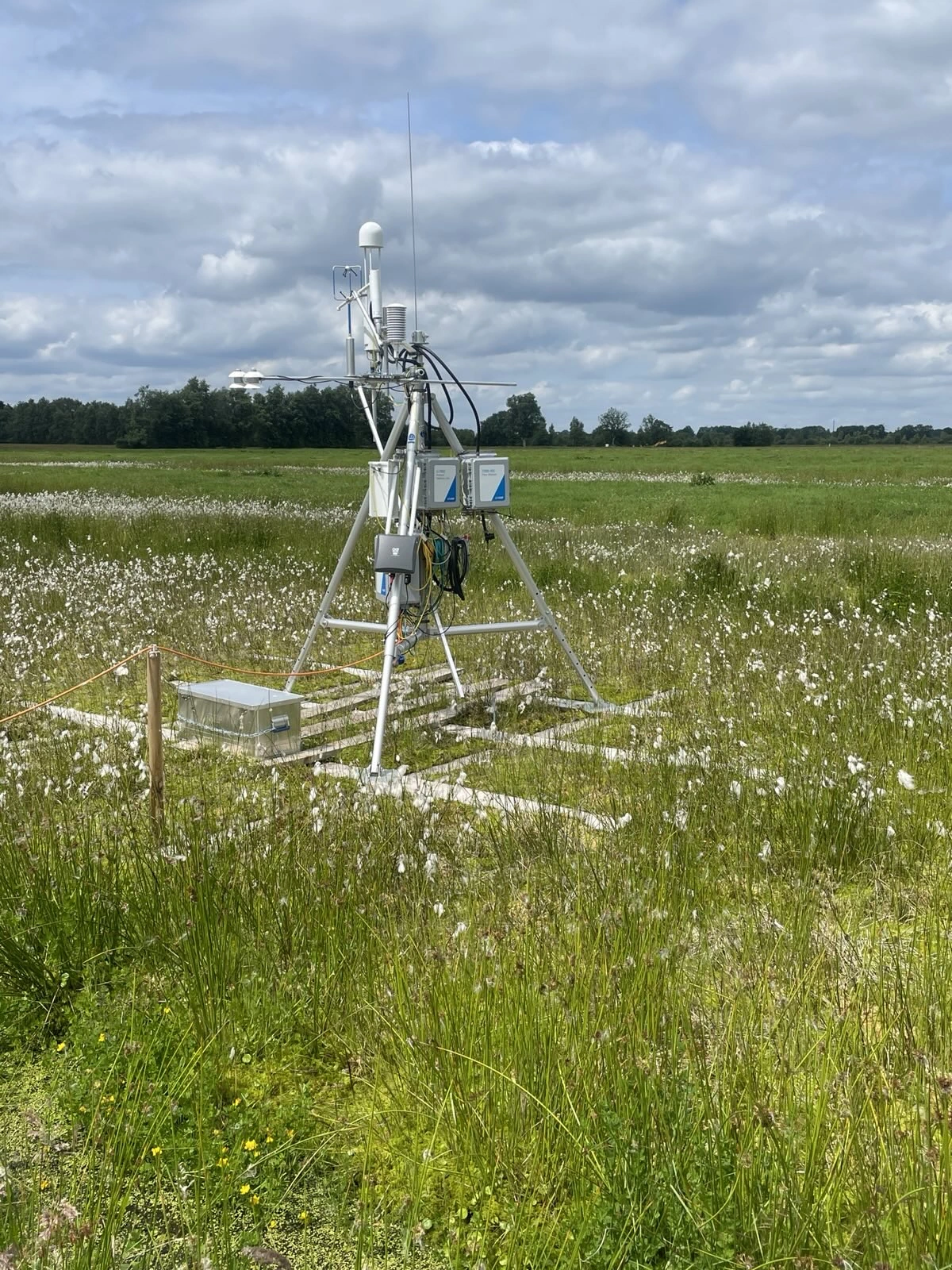 Auf beiden Torfmoos-Paludikulturflächen sowie auf einer Referenzfläche auf Hochmoorgrünland werden Messungen zur Ermittlung der Treibhausgas (THG)-Bilanz stattfinden. Dafür stellen wir Messtürme, sogenannte Eddy-Covariance-Messysteme auf, die die Treibhausgase CO2, CH4 und N2O im Umkreis von ca. 150 m messen. Nach mindestens 5 Jahren Messungen können wir den Einfluss klimatischer Schwankungen zwischen den Jahren auf die Gesamt-THG-Bilanzen abbilden. Zusätzlich werden durch manuelle Haubensysteme kleinere Landschaftselemente genauer unter die Lupe genommen. So lassen sich mögliche Hotspots von THG-Emissionen besser identifizierten.